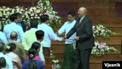 “အကူးအပြောင်းဖြစ်စဉ်မှာ ခင်ဗျားတို့ ရင်ဆိုင်ရမယ့် အခက်အခဲတွေကို ကျွန်တော်တို့ နားလည်သဘောပေါက်ပါတယ်။ ပွင့်လင်းမြင်သာတဲ့ စီးပွားရေးစနစ်ကို ကူးပြောင်းရာမှာ ခင်ဗျားတို့ ကျော်လွှားရမယ့် အခက်အခဲ များစွာရှိပါလိမ့်မယ်။ ဆက်ပြီးတော့ ဖော်ဆောင်နေတဲ့ ငြိမ်းချမ်းရေး ဖြစ်စဉ်တွေမှာလည်း စိန်ခေါ်မှုတွေကို ရင်ဆိုင်ရဦးမှာပါ။ ရေရှည်တည်တန့်ခိုင်မာတဲ့ ငြိမ်းချမ်းရေးရယူ တည်ဆောက်တဲ့ ဖြစ်စဉ်မှာ အချိန်ယူရပါမယ်။”