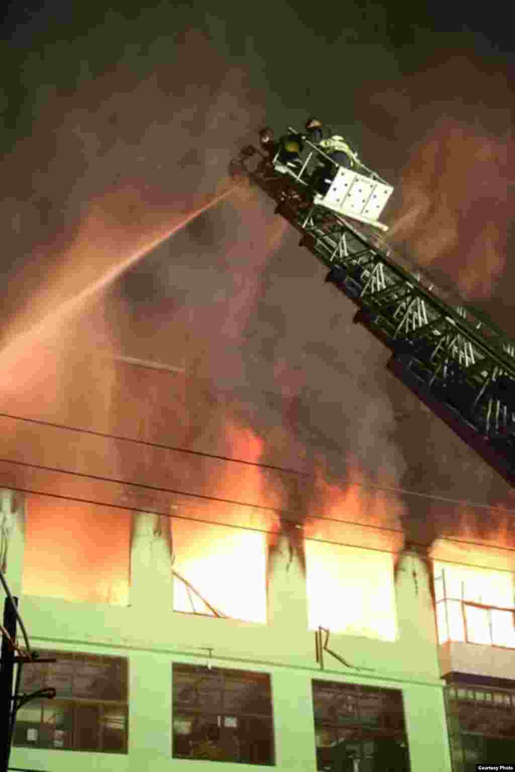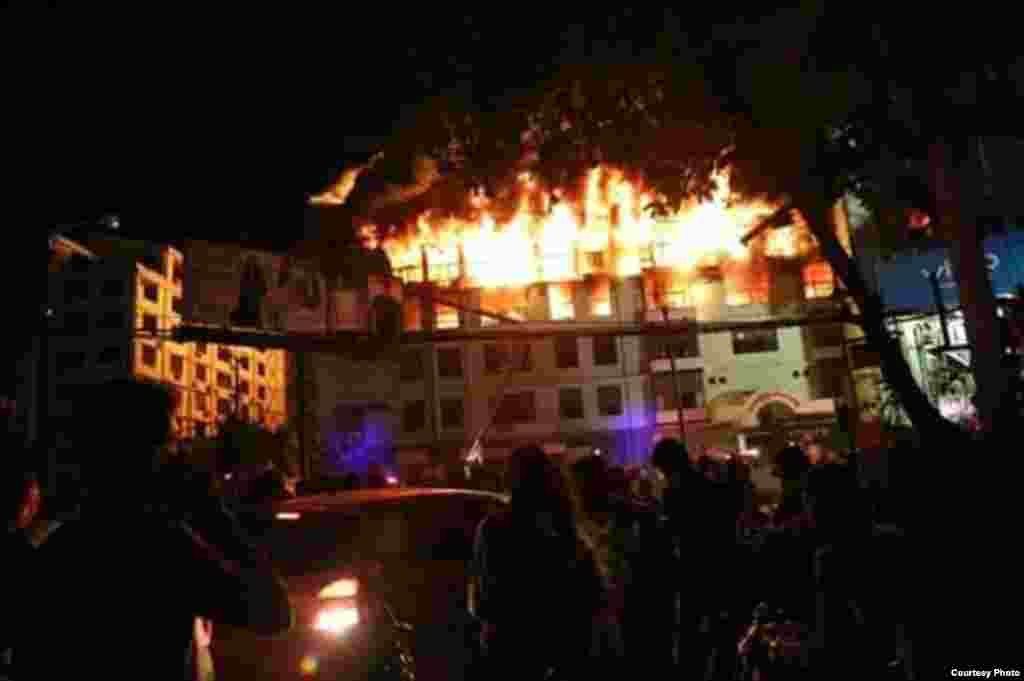 ရန်ကုန် မင်္ဂလာတောင်ညွန့်မြို့နယ်မှာရှိတဲ့ မင်္ဂလာဈေးမှာ ဒီကနေ့ ဇန်နဝါရီလ ၉ ရက်နေ့ မနက်အစောပိုင်းကစလို့ မီး စတင်လောင်ကျွမ်းခဲ့ပြီး၊ ဗွီအိုအေ-မြန်မာပိုင်းက ဆက်သွယ်မေးမြန်းချိန် အထိ မီးက လောင်ကျွမ်းနေဆဲဖြစ်ပါတယ်။ ဈေးရဲ့ အထပ် ၅ လွှာနဲ့ ၄ လွှာမှာ လောင်ကျွမ်းပြီးသွားပြီဖြစ်ပြီး ၃ လွှာထပ်ထိ ကူးစက်လာတဲ့မီးကို မီးသတ်တွေက ကြိုးစား ငြှိမ်းသတ်နေကြတယ်။