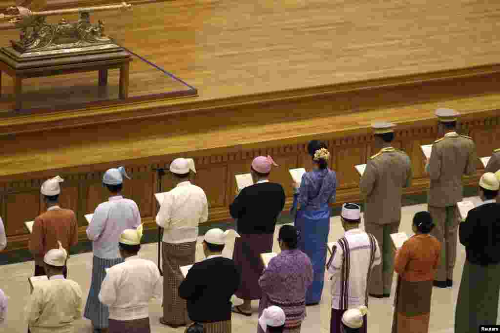 နိုင်ငံတော်သမ္မတအဖြစ် ရွေးချယ်ခံထားရတဲ့ ဦးထင်ကျော်အပါအဝင် ဒုတိယသမ္မတနှစ်ဦးနဲ့ အစိုးရအဖွဲ့ဝင် ဝန်ကြီးတွေ ဒီကနေ့ ပြည်ထောင်စုလွှတ်တော်နာယကရှေ့မှာ ကတိသစ္စာပြုကြပါတယ်။