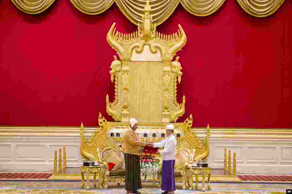 နိုင်ငံတော် သမ္မတအသစ် ဦးထင်ကျော်ထံ တာဝန်လွှဲပြောင်းပေးမှုအခမ်းအနား ( ဓါတ်ပုံ- MOI )