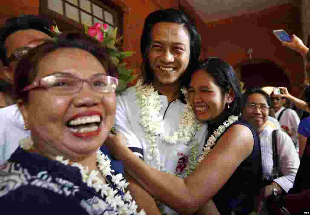 ပြစ်ဒဏ် လွတ်ငြိမ်းခွင့်ဖြင့် အကျဉ်းသားများ လွတ်လာသည့် သတင်းဓါတ်ပုံများ