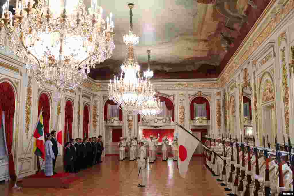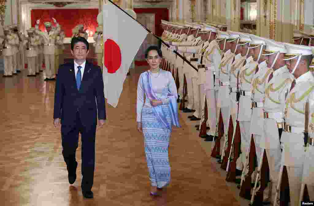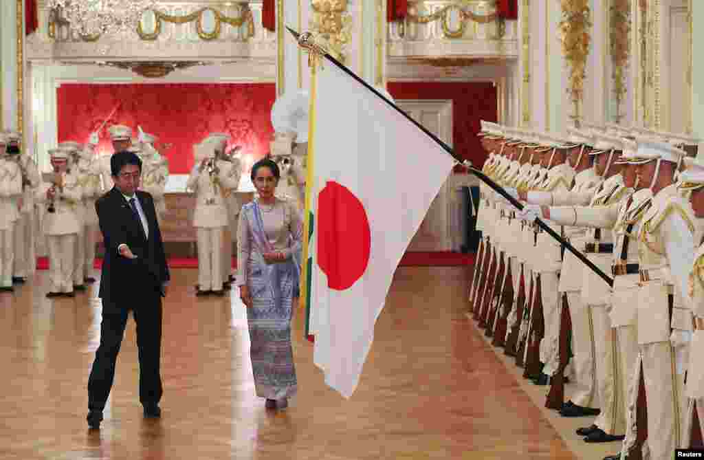 ဂျပန်နိုင်ငံကို ချစ်ကြည်ရေးခရီးအဖြစ် တရားဝင် ရောက်ရှိနေ တဲ့ နိုင်ငံတော်အတိုင်ပင်ခံ ပုဂ္ဂိုလ် ဒေါ်အောင်ဆန်းစုကြည် နဲ့ တိုကျိုမြို့မှာ ဂျပန်ဝန်ကြီးချုပ် မစ္စတာ Shinzo Abe တို့ သတင်းစာရှင်းလင်းပွဲမှာ မြန်မာနိုင်ငံကို လာမယ့် ၅ နှစ်အတွင်း အမေရိကန် ဒေါ်လာ ၈ ဘီလျံနီးပါး ဂျပန်အစိုးရက ကူညီထောက်ပံ့ ပေးသွားမယ့်အကြောင်း ပြောဆိုလိုက်ပါတယ်။