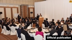 အဲဒီနောက် မွန်းလွဲပိုင်းမှာ တိုကျိုမြို့က ဒေါ်အောင်ဆန်း စုကြည် တည်းခိုနေတဲ့ The Imperial Hotel မှာ Keidanren လို့ခေါ်တဲ့ ဂျပန်စီးပွားရေးအသင်းချုပ်နဲ့ ဂျပန်စက်မှု ကုန်သည်ကြီးများ အသင်း JCCI တို့က တည်ခင်းဧည့်ခံတဲ့ နေ့လည်စာစားပွဲကို တက်ရောက်ပြီး မြန်မာနိုင်ငံမှာ ပဋိပက္ခတွေချုပ်ငြိမ်းမှသာ စီးပွာရေးဖွံ့ဖြိုးတိုးတက် လာနိုင်မှာဖြစ်ကြောင်း ပြောဆိုသွားပါတယ်။
