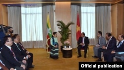 နိုင်ငံတော်အတိုင်ပင်ခံ ဒေါ်အောင်ဆန်းစုကြည် မနီလာမြို့တော်ကို ရောက်လာပြီးနောက် ဗီယက်နမ်ဝန်ကြီးချုပ် Pham Binh Minh နဲ့ တွေ့ဆုံပြီး ၂ နိုင်ငံကြား ကိစ္စရပ်တွေကိုလည်း ဆွေးနွေးခဲ့ပါတယ်။