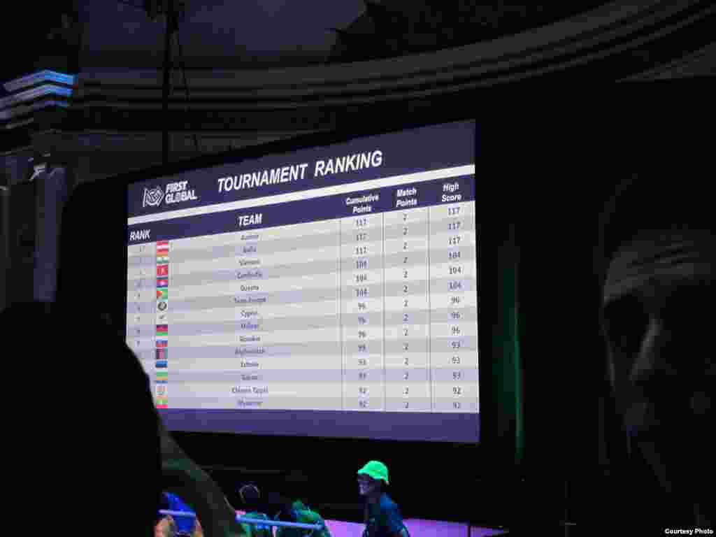 အမေရိကန်ပြည်ထောင်စု ဝါရှင်တန်မြို့တော်မှာကျင်းပနေတဲ့ First Global စက်ရုပ်ပြိုင်ပွဲမှာ မြန်မာလူငယ်အသင်းက တနင်္လာနေ့မှာ ၃ ပွဲ ပါဝင်ယှဉ်ပြိုင်ခဲ့ပါတယ်။