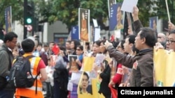 လန်ဒန်မြို့မှာ မနေ့က ဒေသစံတော်ချိန် နေ့လည် ၁ နာရီကစပြီး ဗြိတိန်နိုင်ငံသားနဲ့ မြန်မာ မွတ်ဆလင် တချို့ပါ ပါဝင်တဲ့ လူအင်အား ၄၀၀ ဝန်းကျင်ရှိတဲ့ အင်္ဂလန်ရောက် မြန်မာနိုင်ငံ သားတွေဟာ ဒေါ်အောင်ဆန်းစုကြည်ကို ထောက်ခံတဲ့ဆန္ဒပြပွဲတွေကို သုံးနေရာမှာ ကျင်းပခဲ့ပါတယ်။