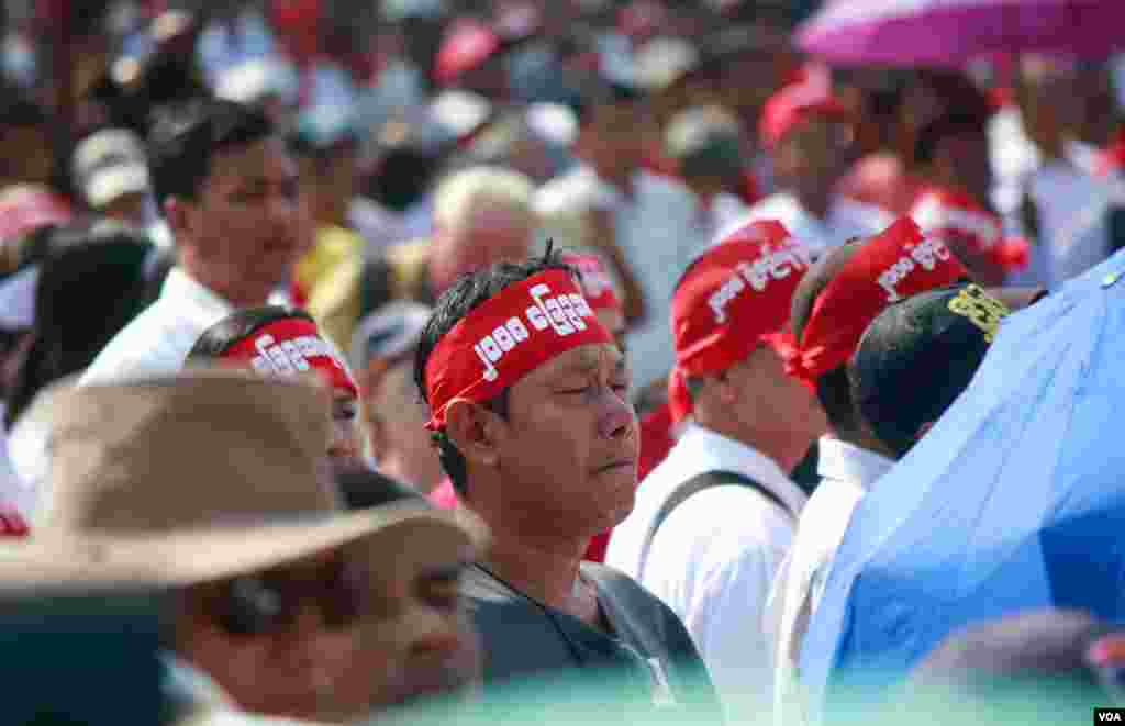 ၂၀၀၈ ခုနှစ် ဖွဲ့စည်းပုံအခြေခံဥပဒေ ပြင်ဆင်ရေး ထောက်ခံဆန္ဒပြပွဲတရပ်ကို ရန်ကုန်မြို့တော် ခန်းမရှေ့ ဒီကနေ့ ပြုလုပ်ရာမှာ အာဏာရ NLD ပါတီကို ထောက်ခံသူ ရာဂဏန်းတတ်ရောက်ပေမယ့်လို့ NLD ပါတီကတော့ ဒီလို လူထုထောက်ခံပွဲတွေလုပ်ဖို့ ညွှန်ကြားထားတာမျိုး မရှိဘူးလို့ ပြောပါတယ်။