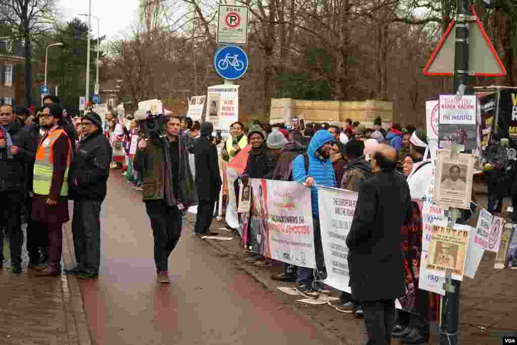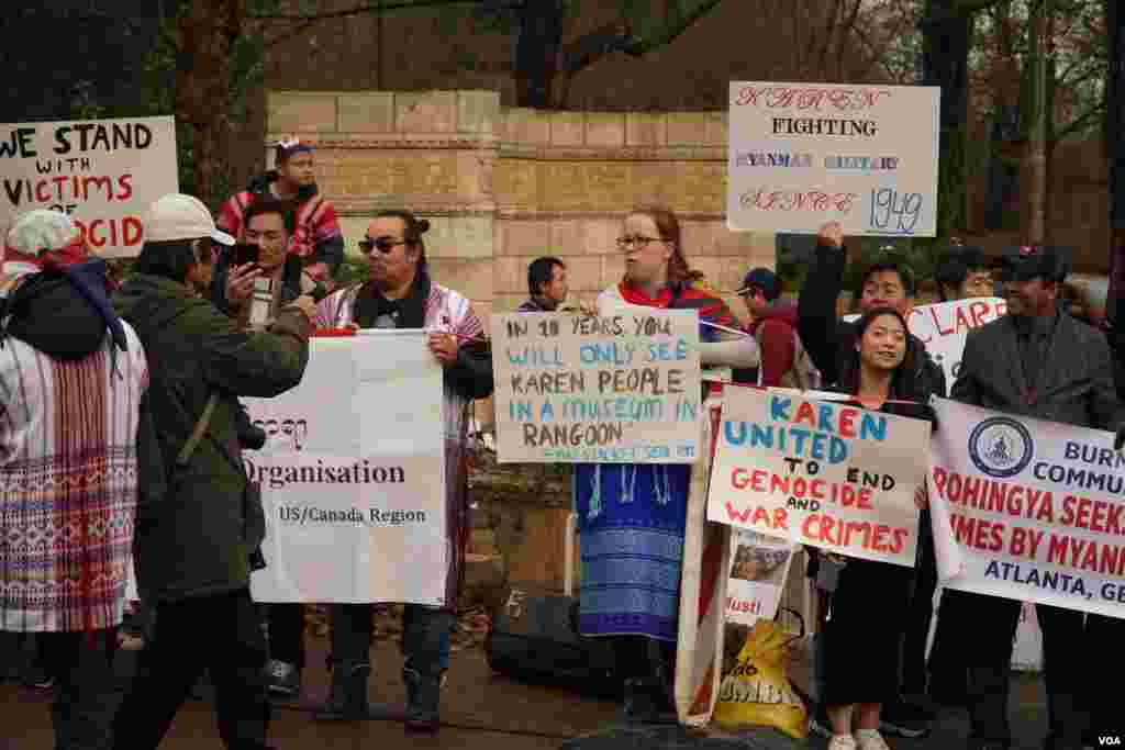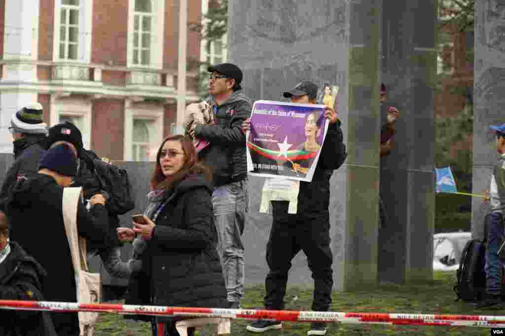 နိုင်ငံတကာတရားခွင် ICJ ရှေ့ ဆန္ဒပြသူများ ဒုတိယနေ့ စုဝေး (ပုံ-VOA)