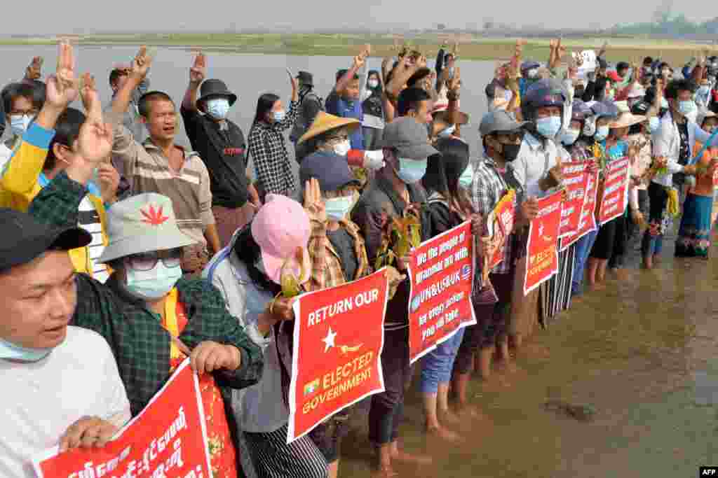 စစ်အာဏာရှင်ဆန့်ကျင်ရေး နေပြည်တော် ဆန္ဒပြပွဲ (ဓါတ်ပုံ-AFP)