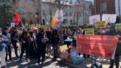 အမေရိကန်ပြည်ထောင်စု အစိုးရ ရုံးစိုက်ရာ ဝါရှင်တန်ဒီစီမြို့တော်မှာတော့ အလင်းရောင်လူငယ်များအဖွဲ့က ဦးစီးပြီး ရာနဲ့ချီတဲ့ မြန်မာပြည်သူတွေ စနေနေ့ နေ့လည်ပိုင်းက စစ်သံရုံးရှေ့နဲ့ လွတ်လပ်ရေးကျောက်တိုင် ကွင်းပြင်မှာ သွားရောက် ဆန္ဒပြခဲ့ကြပါတယ်။