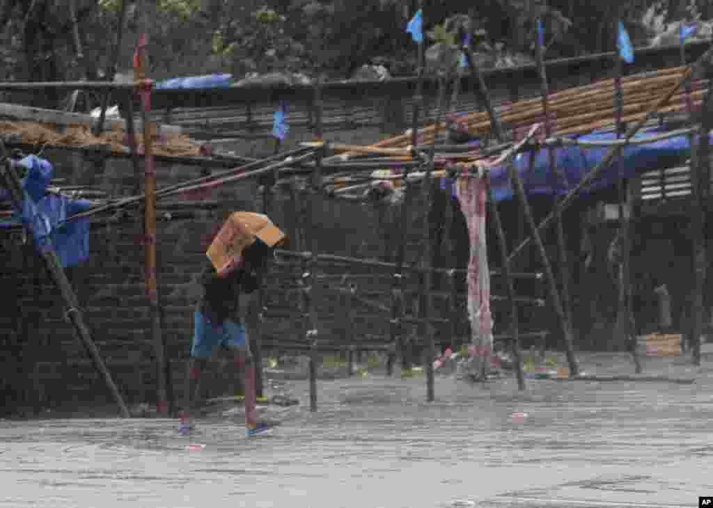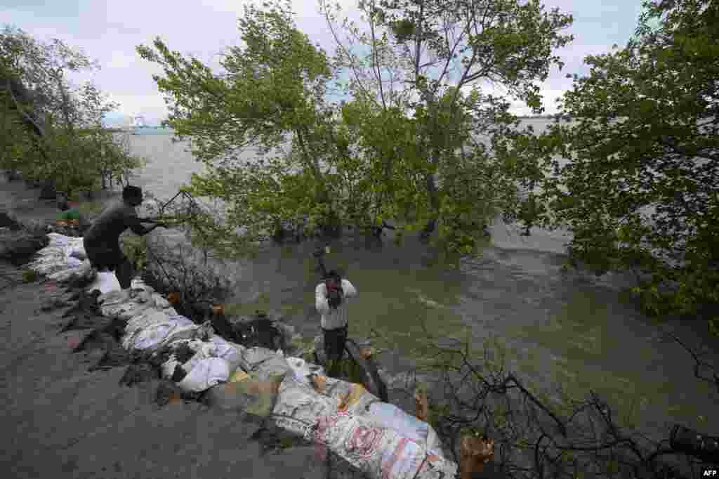 အိန္ဒိယနိုင်ငံအရှေ့ပိုင်း Orissa ပြည်နယ် Chandbali မှာ Amphan ဆိုင်ကလုန်း မုန်တိုင်းမတိုက်ခင် လေတိုက်တာကြောင့် သစ်ပင်များ ကျိုးကျနေတဲ့ မြင်ကွင်း (မေ ၂၀၊ ၂၀၂၀)
