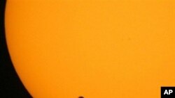 စောင့်ကြည့်သူတွေဟာ အထူးမျက်မှန်တွေနဲ့ ကြည့်ရှုခဲ့ကြတာဖြစ်ပြီး နေရှေ့ကနေ ဖြတ်သွားတဲ့သောကြာကြယ်ကို အမဲစက်သေးသေး လေးအဖြစ် တွေ့ကြရပါတယ်။