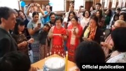 လန်ဒန်မြို့က ဒေါ်အောင်ဆန်းစုကြည် မွေးနေ့ပွဲအခမ်းအနားကို ဒေါ်စုရဲ့သားငယ် Kim Aris (ခေါ်) ကိုထိန်လင်းကိုယ်တိုင် တက်ရောက်ပါတယ်။ သူက ဒေါ်စုကိုယ်စား မွေးနေ့ကိတ်ကို ခွဲပေးပြီး ကျေးဇူးတင်စကား ပြောခဲ့ကြောင်း ဘိလပ်အသံ(BeetlatVoice)အဖွဲ့ တာဝန်ခံ ကိုမင်းဟိန်းက VOA ကိုပြော ပါတယ်။