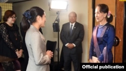 ဂျပန်နိုင်ငံမှာရောက်နေတဲ့ နိုင်ငံတော်အတိုင်ပင်ခံပုဂ္ဂိုလ် ဒေါ်အောင်ဆန်းစုကြည်က သူ့ကိုချီးမြှင့် ထားတဲ့ ငြိမ်းချမ်းရေးနိုဘဲလ် ဆုကို ပြန်ရုပ်သိမ်းဖို့ နိုင်ငံတကာမှာ တောင်းဆိုတာတွေ ရှိနေတဲ့အပေါ် အရေးတကြီးစဉ်းစားရမယ့် ကိစ္စရပ်တခုမဟုတ်တဲ့ သဘောမျိုး ပယ်ချပြောဆိုပါတယ်။