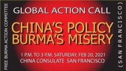 မြန်မာနိုင်ငံမှာ အာဏာသိမ်းထားတဲ့ စစ်ကောင်စီကို ထောက်ခံ ကူညီ အားပေးနေတာတွေ ဆက်မလုပ်ဖို့နဲ့ ရွေးချယ်တင်မြှောက်ခံထားရတဲ့ အရပ်သားအစိုးရကို ထောက်ခံပြီး ၊ ပူးပေါင်းဆောင်ရွက်မှုလုပ်ဖို့ Global Action Call on China ဆိုတဲ့လှုပ်ရှားမှုကို "China's Policy, Burma's Misery" ဆိုတဲ့ခေါင်းစဉ်နဲ့ အမေရိကန်ပြည်ထောင်စု ပြည်နယ်တချို့မှာ မြန်မာတွေက တရုတ်သံရုံးနဲ့ ကောင်စစ်ဝန် ရုံးတွေရှေ့ တောင်းဆိုဆန္ဒပြကြတဲ့အကြောင်း ကိုဉာဏ်ဝင်းအောင်က စုစည်း တင်ပြထားပါတယ်။