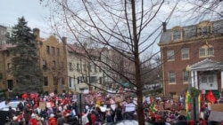 " မြန်မာ့ဒီမိုကရေစီ အင်အားစုများကွန်ယက်ဆိုပြီးတော့ သူတို့ဖွဲ့စည်းပြီးတော့ အခု ဆန္ဒပြနေကြတာပါ။ ဒီဆန္ဒပြပွဲမှာတော့ ဝါရှင်တန်ဒီစီမှာနေတဲ့ မြန်မာတွေ ၊ မေရီလန်း ဗာဂျီးနီးယားနဲ့ အင်ဒီယားနား ပြည်နယ်တွေက မြန်မာတွေအပြင် တခြားတခြားသော ပြည်နယ်တွေက မြန်မာတွေလည်း အတော်လေး လာရောက် ဆန္ဒပြကြပါတယ်။ ၃၀၀ နီးပါးလောက်ရှိမယ်လို့ ခန့်မှန်းရပါတယ်။ သူတို့ရဲ့ တောင်းဆိုချက်တွေကတော့ ဒေါ်အောင်ဆန်းစုကြည်ရယ်၊ သမ္မတကြီး ဦးဝင်းမြင့်ရယ် ဖမ်းဆီးခံထားရသူအားလုံး အမြန် ပြန်လွှတ်ပေးရေး ၊ ၂၀၂၀ ရွေးကောက်ပွဲ ရလဒ်ကို ချက်ချင်းအသိအမှတ်ပြုရေး ၊ နောက်ပြီး စစ်တပ်က စစ်တန်းလျား အမြန်ပြန်သွားရေး အဲဒါတွေကို တောင်းဆိုကြပါတယ်။ နောက်ပြီး ဝန်ထမ်းတွေ ရုံးမတက်ဖို့ ၊ ဝန်ထမ်းတွေအတွက် ထောက်ပံ့ရေး အစီအစဉ်တွေကို ပြည်တွင်းပြည်ပက ဆောင်ရွက်ကြဖို့ကိုလည်း တိုက်တွန်းပါတယ်။
