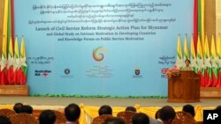 ဇူလိုင် ၁၅၊ ၂၀၁၇ - မြန်မာနိုင်ငံမှာ အစိုးရဝန်ထမ်းလို့ လူသိများတဲ့ နိုင်ငံ့ဝန်ထမ်းတွေ ပြုပြင်ပြောင်းလဲရေးအတွက်၊ အကျင့်ပျက်ခြစားမှုတွေ၊ ဗဟိုချုပ်ကိုင်မှုတွေ လျှော့ချမယ့် အစီအစဉ်တွေ ပါဝင်တဲ့ မဟာဗျုဟာတရပ်ကို ချမှတ်ကျင့်သုံးဖို့ အစိုးရက ပြင်ဆင်နေပါတယ်။