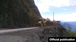 အသစ်ခင်းထားတဲ့ လမ်းမကြီးဘေး တောင်ပေါ်ကနေ မြေပြိုရတာဖြစ်တယ်လို့ ကလေးမြို့ခံ ကိုသန့်ဇင်ဆွေက ပြောပါတယ်။