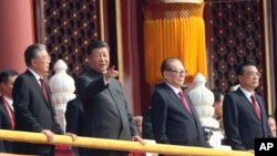 ၁၉၄၉ ခုနှစ် အောက်တိုဘာလ ၁ ရက်နေ့မှာ ပါတီခေါင်းဆောင် မော်စီတုန်းက တရုတ်ပြည်သူ့ သမ္မတနိုင်ငံ ထူထောင်ကြောင်းကြေညာခဲ့တဲ့ တီယံနံမင်ရင်ပြင်မှာ တပ်ဖွဲ့အင်အား ရာနဲ့ချီပါဝင်တဲ့ ဒီကနေ့ စစ်ရေးပြအခမ်းအနားကို သမ္မတ ရှီနဲ့အတူ ဝန်ကြီးချုပ် Li Keqiang နဲ့ တခြား ပါတီခေါင်းဆောင်တွေလည်း တက်ရောက်ကြပါတယ်။