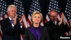 ဒါ့အပြင် ရွေးကောက်ပွဲအစဉ်အလာအရလည်း အဲဒီနေ့မနက်မှာပဲ သူ့အတွက် မဲဆွယ်လှုပ်ရှားပေးခဲ့တဲ့ ထောက်ခံသူတွေကို ရွေးကောက်ပွဲရှုံးနိမ့်ကြောင်း မိန့်ခွန်းကို ဟီလာရီ ကလင်တန်က နယူးယောက်မှာ ပြောကြားခဲ့ပါတယ်။ တဘက်နဲ့တဘက် နှစ်နှစ်ကာကာ ဝေဖန်ပြောဆို တိုက်ခိုက်ခဲ့တဲ့ မဲဆွယ်လှုပ်ရှားမှုကြောင့်လည်း နိုင်ငံမှာ စိတ်ဝမ်းကွဲမှုတွေ ဖြစ်ခဲ့တာကြောင့် သူ့ပြိုင်ဘက် အနိုင်ရသူ Donald Trump အပေါ် သဘောထားကြီးဖို့ကိုလည်း ဟီလာရီ ကလင်တန်က သူ့အပေါ် ထောက်ခံသူတွေကို အခုလို ပြောကြားခဲ့ပါတယ်။