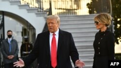 Trump နဲ့ သူ့ဇနီး Melania Trump တို့ကို သူတို့ရဲ့ လက်ထောက် အနည်းငယ်နဲ့ ဒါဇင် လောက်ရှိတဲ့အိမ်ဖြူတော်သတင်းအဖွဲ့က ဖလော်ရီဒါပြည်နယ်မှာရှိတဲ့ Mar-a-Lago အပန်းဖြေစံအိမ်ကို လိုက်ပါပို့ ဆောင်ခဲ့တာပါ။