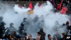 ဂျာမနီနိုင်ငံ Hamburg မြို့မှာ ကျင်းပတော့မယ့် G20 ကမ္ဘာ့ စီးပွားရေး အင်အားကြီးနိုင်ငံ ၂၀ ထိပ်သီး အစည်းအဝေးကို ဆန့်ကျင်ချီတက်ကြသူ အရင်းရှင်ဝါဒီ ဆန့်ကျင်ရေး ဆန္ဒပြသမားတွေနဲ့ ဂျာမနီရဲတပ်ဖွဲ့တို့ကြား ကြာသပတေးနေ့က တိုက်ခိုက်မှုတွေ ဖြစ်ပွားခဲ့ပါတယ်။