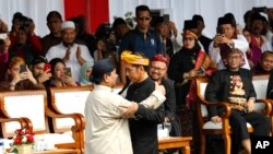 တနင်္ဂနွေနေ့မနက်ပိုင်းက ဂျကာတာမြို့လည်ခေါင်မှာလုပ်တဲ့ မဲဆွယ်စည်းရုံးရေး တရားဝင်စတင်ပွဲ အခမ်းအနားတွေကို သမ္မတ Jokowi နဲ့ ပြိုင်ဘက် ဗိုလ်ချုပ်ကြီးဟောင်း Prabowo Subianto တို့ နှစ်ဦးလုံး အင်ဒိုနီးရှား ရိုးရာဝတ်စုံတွေဝတ်ဆင်ပြီး အသီးသီး တက်ရောက်ကြပါတယ်။