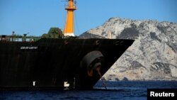 ဥရောပ သမဂ္ဂရဲ့ ဒဏ်ခတ်ပိတ်ဆို့မှုကို ချိုးဖောက်မှုနဲ့ ဗြိတိန် ပိုင်နက် ဂျီဘရော်တာမှာ ဖမ်းခံခဲ့ရတဲ့ အီရန် ရေနံတင်သဘောၤက တနလာၤနေ့မှာ ဂရိနိုင်ငံကို ဦးတည် ခုတ်မောင်းသွားပြီ ဖြစ်ပါတယ်။ ဒီသဘောၤကို ထိန်းသိမ်းနိုင်ရေး အမေရိကန်ရဲ့ တောင်းဆိုချက်ကို ဂျီဘရော်တာ အာဏာပိုင်တို့ ပယ်ချခဲ့ပြီးနောက် အခုလို ရေနံတင် သဘောၤ ထွက်ခွာသွားခဲ့တာ ဖြစ်ပါတယ်။