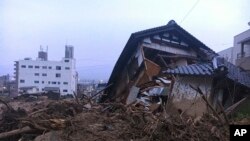 ဂျပန်နိုင်ငံ အနောက်တောင်ပိုင်းမှာ သုံးရက်ဆက်တိုက် အပြင်းအထန်မိုးရွာပြီး မြေပြိုကျတာတွေကြောင့် လူ ၈၀ ထက်မနည်း သေဆုံးရပြီးတဲ့နောက် ပျောက်ဆုံးနေသူတွေကို ကယ်ဆယ်ရေးလုပ်သားတွေ တနင်္ဂနွေနှောင်းပိုင်းက ဆက်ပြီးရှာနေကြပါတယ်။
