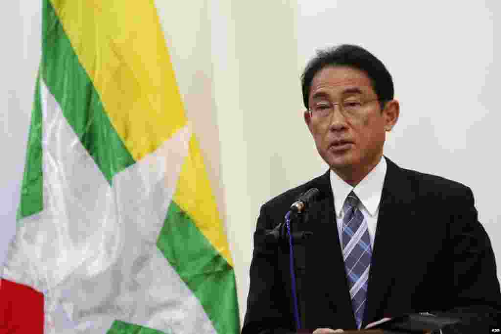 ဂျပန်နိုင်ငံအနေနဲ့ NLD ဦးဆောင်တဲ့ အစိုးရသစ်ရဲ့ ဒီမိုကရေစီရေးနဲ့ဖွံဖြိုးရေး လုပ်ငန်းစဉ်တွေကို အပြည့်အ၀ အကူအညီပေးသွားမယ်လို့ မြန်မာနိုင်ငံကိုရောက်ရှိနေတဲ့ ဂျပန်နိုင်ငံခြားရေး ဝန်ကြီးက နေပြည်တော်မှာ ပူးတွဲသတင်းစာရှင်းလင်းပွဲမှာ ပြောဆိုသွားပါတယ်။ မြန်မာနိုင်ငံခြားရေး ဝန်ကြီး ဒေါ်အောင်ဆန်းစုကြည်နဲ့ တွေ့ဆုံအပြီးမှာတော့ ဂျပန် နိုင်ငံခြားရေး ဝန်ကြီးဟာ သမ္မတ ဦးထင်ကျော် နဲ့ တွေ့ဆုံဆွေးနွေးပါတယ်။