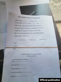"နှဈကွီးသမားတှထေဲဆိုရငျ ဗိုကျကွီးသညျ နှဈ ယောကျပဲပါပါတယျ။ ဒီခါလာကွေးတှေ ဒီလူမှုဖူလုံရေးကွေးတှေ မယူပါဘူးဆိုပွီး သူတို့က အတငျးစာခြုပျနဲ့ လကျမှတျထိုးခိုငျးတာ အဲ့ဒီ့စာခြုပျကို ကလေးတှကေ ပွနျခငြျဇောနဲ့ ပွနျရရငျပွီးရောဆိုပွီး လကျမှတျထိုးပေးလိုကျကွတာ။ အဲ့တော့ ကိုယ့ျရပိုငျခှင့ျတှေ တခုမှ မရတော့ဘူး။ မွနျမာတှကေ အရမျးကွောကျပွီးတော့ ထိုးကွတယျ။ အမြားကွီးပဲ အယောကျ ၁၀၀ ကြောျတောငျ အဲ့ဒီ့ထဲမှာ ညီမတို့မပါဘူး။ ညီမတို့ကကတြော့ ပွနျမယ့ျစာရငျး ဖောငျပဲဖွည့ျရသေးတယျ။ ဒီခါလာကွေးကိုယူမယျဆိုတာ သူတို့ကိုပွောပွီးသားဖွဈတဲ့အတှကျ အခုသူတို့စာရငျးထဲမှာ မပါဘူး။ အခုသူမြားစကျရုံတှကေ ပိုကျဆံတှကေို ပေးသင့ျတာတှေ ပေးပွီးသှားပွီ။ ဒီစကျရုံက ပိုကျဆံနဲ့ပတျသကျပွီး ပေးဖို့ မရှိဘူး ညီမတို့ကလညျး အဲ့ပိုကျဆံလေးကို စောင့ျနတော။ လကျထဲမှာလေ တပွားမှကို မရှိတော့တာ။ ညီမတို့ ဒီမှာ အလုပျမလုပျရတဲ့ ၃ လ အခုဆို ၄ လ ရှိပွီ အဲ့ဒါကွေးလညျးရမယျ၊ အပွငျမှာ အိမျဌားနတေဲ့သူဆိုရငျ အိမျဌားကွေးက အဲ့တာက အစ ရမယျလို့တော့ သူတို့ကပွောထားတယျ။ ဒီပိုကျဆံတှေ မရသေးဘူးလို့ ပွောတဲ့သူက လှမျးပွောတော့ မွနျမာအစိုးရဘကျကနပွေီးတော့ ဒီပိုကျဆံတှကေို ဒီကလေးတှရေဲ့ ရပိုငျခှင့ျမှနျသမြှကို ပေးရမယျပေါ့။ မပေးဘဲနဲ့ဆိုရငျ ဟိုဘကျကနေ လာမခေါျဘူးလို့ပွောတယျ။ အဲ့ဒါ ညီမတို့ HR ကပွောတယျ ညီမလညျးပွနျကွားတာပေါ့နောျ ၅၀-၅၀ လို့ပွောတယျ ဒါပမေဲ့ အခုကလေးတှကေ အခု တရာနဲ့တယောကျကို သူတို့က စာခြုပျနဲ့ကို လကျမှတျထိုးခိုငျးထားတာ။"