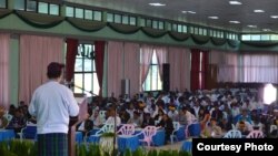 “ဒီကချင်ပြည်နယ်အစိုးရ ဝန်ကြီးချုပ်ကိုလည်း အကြောင်းကြားတယ်။ နယ်လုံတွေကိုလည်း အကြောင်းကြားပြီးမှ တဆင့်ပြီးတဆင့် ဆွေးနွေးပါတယ်။ ဒါပေမယ့် ဘာမှ ထူးခြားမှုမရှိတော့ ဖြစ်မြောက်ရေးကော်မတီကနေ နေပြည်တော်ကို တိုက်ရိုက်ဆက်သွယ်တယ်။ ဒီနေ့မနက် ခေါင်းစီးကတော့ ကချင် National Conference ပေါ့နော်၊ ကချင်အမျိုးသားညီလာခံဖြစ်ပါတယ်။ ဒါပေမယ့် ဟိုကနေခွင့်ပြုတာကတော့ ကချင်အမျိုးသားနိုင်ငံရေးဆွေးနွေးပွဲ ဒါမျိုးခေါင်းစဉ်နဲ့ လုပ်ခွင့်ပြုတယ်လို့ ကြားနေတယ်။ အဲဒါကြောင့် ယနေ့ည ၃ နာရီမှာ အခန်းအနားကို စပြီးမှ ဖွင့်လစ်ဖို့ပေါ့ ပြင်ဆင်နေကြပါတယ်။”
