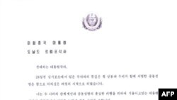 မြောက်ကိုရီးယားခေါင်းဆောင် Kim Jong Un ဆီကနေ “သိပ်ကောင်းတဲ့” စာတစောင် သူ လက်ခံရရှိတယ်လို့ သမ္မတ ဒေါ်နယ်လ်ဒ် ထရမ့်ပ်ကပြောပါတယ်။ အဲဒီစာထဲမှာ နှစ်နိုင်ငံအကြား ဆက်ဆံရေးတိုးတက်စေဖို့နဲ့ ပြီးခဲ့တဲ့ဇွန်လ စင်္ကာပူထိပ်သီး အစည်းအဝေးမှာ သူတို့နှစ်ဦး ပူးတွဲလက်မှတ်ရေးထိုးထားတဲ့ ထုတ်ပြန်ချက်ကို အကောင်အထည်ဖော်ဖို့ သမ္မတထရမ့်ပ်ရဲ့ ကြိုးပမ်းချက်တွေကို ချီးကျူးပြောဆိုထားတယ်လို့ ဆိုပါတယ်။