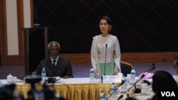 ရခိုင်ပြည်နယ်ထဲမှာ ဖြစ်နေတဲ့ ပြဿနာတွေကို လေ့လာသုံးသပ်ပြီး ဖြေရှင်းနိုင်မယ့် အကြံပြုချက်တွေကို ပေးကြမယ့် ရခိုင်အကြံပေးကော်မရှင်အနေနဲ့ ပြဿနာဖြစ်နေရတဲ့ အကြောင်းရင်းခံတွေကို အသေအချာ လေ့လာသုံးသပ်မယ်လို့ မျှော်လင့်ကြောင်း နိုင်ငံတော်အတိုင်ပင်ခံပုဂ္ဂိုလ် ဒေါ်အောင်ဆန်းစုကြည်ကလဲ ပြောကြားခဲ့ပါတယ်။