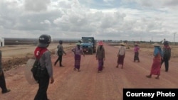 “သူတို့တူးထားတဲ့ နေရာရှိတယ်ပေါ့ဗျာ အဲဒီထဲကို ဘလိတ်ဓါးတို့၊ သံဆူးကြိုးတို့ချထားတယ်။ ပုလင်းကွဲတွေ နောက်လူထုတွေတက်မလာနိုင်အောင် မှန်ကွဲတွေ၊ ပုလင်းကွဲတွေချထားတယ်ပေါ့ဗျာ။ ဒါပေမယ့် လူထုကတော့ မတရားလုပ်ထားတဲ့အတွက် ဒေသခံလူငယ်တွေအဲဒီကိုသွားပြီးတော့ တားကြတယ်ခင်ဗျ။ ဒီနေ့ပိုပြီးတော့များတယ် ၊ များတယ်ဆိုတာက စနစ်တကျပုံစံမျိုးနဲ့ လူထုလုံးဝတက်မလာနိုင်အောင် သူတို့ကလုပ်ထားတယ်။ ရဲတွေလည်း တိုးချထားတယ်ပေါ့ဗျာ။ ဒေသခံတွေ ထွက်ပြီးတော့ တားတဲ့အချိန်အခါမှာတော့ ခဏနောက်ဆုတ်သွားတယ်ပေါ့နော်။ သူတို့ကတော့ ဒီခြံစည်းရိုးတွေ ကပ်တဲ့အချိန်တုန်းကလည်း ဒီလိုပဲ လူထုက တက်လာလိုက်၊ နောက်ဆုတ်လိုက် နောက်တခါပြန်လုပ်လိုက် ၊ ညမှာလူထုတက်မလာခင် လုပ်လိုက် ၊ ဒီလိုနဲ့ပဲလုပ်ပြီးတော့ သွားတာပဲဗျ။”