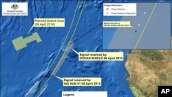 ဗုဒ္ဓဟူးနေ့အစောပိုင်းမှာ အမေရိကန်ရေတပ်ရဲ့ ရှာဖွေစက် pinger locator က လေယာဉ်ရဲ့ black box က ထုတ်လွှတ်တဲ့ အချက်ပေးသံ ၂ ခုကို ကြားခဲ့ရတာမို့ လေယာဉ်ပျက်ရဲ့ အပိုင်းအစတွေ တွေ့လာနိုင်မယ်လို့ မျှော်လင့်ကြောင်း သြစတြေးလျ ရှာဖွေရေးအဖွဲ့ ခေါင်းဆောင် မစ္စတာ Huston ကပြောပါတယ်။