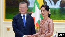 မြန်မာနိုင်ငံတော်အတိုင်ပင်ခံပုဂ္ဂိုလ်ဒေါ်အောင်ဆန်းစုကြည်နဲ့ တောင်ကိုရီယားသမ္မတနဲ့ Moon Jae-In တို့ ဒီကနေ့ တွေ့ဆုံပြီး ပူးတွဲသတင်းစာရှင်းလင်းပွဲအတွင်းမှာ နှစ်နိုင်ငံ ကုန်သွယ်ရေးနဲ့ ဖွံဖြိုးရေးဆိုင်ရာပူးတွဲဆောင်ရွမယ့်ကိစ္စတွေကိုပဲ အလေးပေးပြောခဲ့ပါတယ်။ တောင်ကိုရိယားသမ္မတ ရဲ့ အခု ခရီးစဉ်အတွင်းမှာလည်း မြန်မာနိုင်ငံတွင်းရင်းနှီးမြုပ်နှံလုပ်ကိုင်နေတဲ့ ကိုရီယားကုမ္ပဏီတွေအတွက် ကိုရီယားအစိုးရကုန်သွယ်ရေးရုံးဖွင့်မယ့်ကိစ္စနဲ့ အထူးဇုံအုတ်မြစ်ချဖို့ကိစ္စတွေဟာ အဓိကလိုဖြစ်နေပါတယ်။