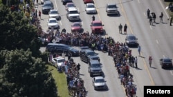 ကွယ်လွန်သူ နာမည်ကျော် လက်ဝှေ့ချံပီယံ မိုဟာမက်အလီရဲ့ နောက်ဆုံး ခရီးအဖြစ် သူ့ရဲ့ ရုပ်ကလာပ်ကို သောကြာနေ့က Kentucky ပြည်နယ် Louisville က Cave Hillသုဿန်ကို ပို့ဆောင်ရာမှာ ယာဉ်တန်း ဝဲယာတလျှောက် ပြည်တွင်းပြည်ပက လာရောက်ကြတဲ့ သူ့ပရိတ်သတ်တွေနဲ့ ပြည့်နေပြီးကလေးငယ်တွေက လက်အိပ်တွေနဲ့ လက်ဝှေ့ထိုးတဲ့ပုံတွေ လုပ်ပြီး ဘေးကနေ ပြေးလိုက်လာကြသလို အလီ၊ အလီလို့ ဟစ်အော် ဂုဏ်ပြုခဲ့ ကြပါတယ်။