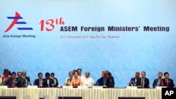 ၁၃ ကြိမ်မြောက် ASEM အာရှ ဥရောပနိုင်ငံခြားရေးဝန်ကြီးများ ဆွေးနွေးပွဲကို နေပြည်တော်မှာ ဒီကနေ့စတင် ကျင်းပပါတယ်။ ကမ္ဘာတဝန်း ပဋိပက္ခတွေ မတည်ငြိမ်မှုတွေရှိနေချိန်မှာ နိုင်ငံတွေရဲ့ ဖွံ့ဖြိုးတိုးတက်ရေးအတွက် ငြိမ်းချမ်းရေးဟာအရေးကြီးတယ်လို့ နိုင်ငံတော်အတိုင်ပင်ခံဒေါ်အောင်ဆန်းစုကြည်က အဖွင့်မိန့်ခွန်းမှာ ပြောကြားခဲ့ပါတယ်။ EU သံတမန်တွေကို ဦးဆောင်တဲ့ EU အကြီးအကဲကလည်း ဒီကနေ့အချိန်မှာ အာရှနဲ့ဥရောပကြား ပူးပေါင်းဆောင်ရွက်ရေးဟာ ပိုပြီးအရေးကြီးတယ်လို့ မိန့်ခွန်းပြောကြားသွားခဲ့ပါတယ်။ အာရှနဲ့ဥရောပကြား ဘုံကိစ္စတွေအပြင် ရခိုင်ပြည်နယ်မြောက်ပိုင်းအရေးကို ASEM နိုင်ငံခြားရေးဝန်ကြီးတွေကြား အဓိကထား ဆွေးနွေးနေကြတဲ့အကြောင်း ဆွေးနွေးပွဲမှာ ကိုယ်တိုင်သတင်းယူနေတဲ့ မစုမြတ်မွန်က ဆက်ပြီးတင်ပြပါမယ်။