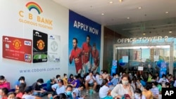 “ ဘဏ်ကတော့ ဘာမှ ထုတ်လို့ မရဘူး။ သူတို့ တုံကင်တွေ ပေးတယ်။ အဲဒီ ATM ကလည်း တုံကင်ပေးပြီးတော့ ထုတ်တယ် ပြောတာဘဲ ဒါပေမယ့် ကျနော်တို့ သွားထုတ်တော့ အခု အထိတော့ အဆင်မပြေသေးဘူး။ အဲဒီတော့ ၆ လပိုင်း ၁ ရက်နေ့မှ တုံကင် လာယူပါလို့ ပြောတယ်။ ကျနော်တို့ကတော့ CB ဘဏ် သုံးတာပေါ့နော်။ အဲတော့ ဘဏ်တိုင်းဘဲ။ ကမ္ဘောဇလည်း ဒီတိုင်းပါဘဲ။ ထုတ်လို့ မရကြဘူး။ ”