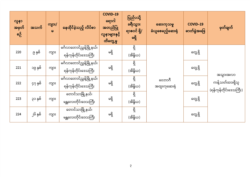 လူနာ အမှတျ (၂၀၈) ကနေ အမှတျ (၂၂၂) ယောကျအထိက ရနျကုနျတိုငျးဒသေကွီးအတှငျး နထေိုငျသူတှဖွေဈကွပွီး ကနြျ ၂ ဦးဖွဈတဲ့ လူနာ အမှတျ (၂၂၃) နဲ့ အမှတျ (၂၂၄) တို့ကတော့ မန်တလေးတိုငျးဒသေကွီး၊ တောငျသာမွို့နယျကဖွဈတယျလို့ အားကစားဝနျကွီးဌာနရဲ့ ထုတျပွနျခကြျမှာ ဖောျပွထားပါတယျ။