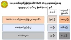 စကျတငျဘာလ ၈ ရကျနေ့အတှကျ ဓါတျခှဲ နမူနာ စုစုပေါငျး ၃၃၁၇ ကို စဈဆေးခဲ့ရာက နောကျထပျ ရောဂါ ကူးစကျခံရသူ အတညျပွု လူနာ ၉၈ ဦးကို တှေ့ရှိခဲ့တာ ဖွဈပါတယျ။ ဒါ့အပွငျ ကိုဗဈ ဓါတျခှဲ အတညျပွု လူနာ ၂ ဦး သဆေုံးခဲ့တယျလို့လညျး ကနြျးမာရေး ဝနျကွီးဌာနက ပွောပါတယျ။ သဆေုံးသူတှကေ အသကျ ၅၁ နှဈအရှယျ အမြိုးသား တဈဦးနဲ့ ၅၇ နှဈအရှယျ အမြိုးသမီး တဈဦး ဖွဈပွီး ဝဘောဂီ အထူးကု ဆေးရုံနဲ့ သငျ်ကနျးကြှနျး ပွညျသူ့ ဆေးရုံကွီးတို့မှာ ဆေးကုသမှု ခံယူနရေငျး သဆေုံးခဲ့တာဖွဈပါတယျ။
