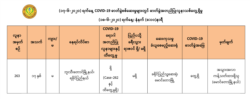 မွနျမာမှာ ကိုဗဈကူးစကျသူ တဦးထပျတိုးပွီး စုစုပေါငျး ၂၆၃ ဦးရှိ