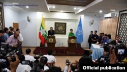 ဒေါ်အောင်ဆန်းစုကြည်ရဲ့ မိတ်ဆက်ပေးမှုနဲ့ ကုလသမဂ္ဂ အတွင်းရေးမှူးချုပ် ဘန်ကီမွန်းက အဖွင့်အမှာစကား ပြောကြားတဲ့နေရာမှာ ကုလ သမဂ္ဂ အနေနဲ့ ဒေါ်အောင်ဆန်းစုကြည်နဲ့ မြန်မာ့ ဒီမိုကရေစီရေး လှုပ်ရှားမှုတွေကို အမြဲတစေ ထောက်ခံပံ့ပိုးမှုတွေ လုပ်ခဲ့တဲ့ အကြောင်း၊ အခုလို ဒေါ်အောင်ဆန်းစုကြည်ကို အစိုးရ အဖွဲ့တွင်း တာဝန်ယူမှု ခေါင်းဆောင်အနေအထား တရပ်နဲ့ တွေ့ရတာ ဝမ်းမြောက်ကြောင်း ပြောကြားခဲ့ပါတယ်။