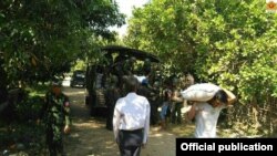 “အဲဒီနားမှာရှိတဲ့ ရွာထဲမှာလည်း သူတို့လူအုပ်ကြီးနဲ့ နေလို့မရဘူး ။ နေလို့မရတော့ ရွာနားမှာရှိတဲ့ လယ်ကွင်းတွေထဲမှာ ယာယီတဲတွေနဲ့ ထိုးပြီးတော့ နေတယ်လို့ ကျနော်တို့ တွေ့ရတယ်။ တွေ့ရတော့ ရခိုင်ပြည်နယ်အစိုးရကနေပြီးတော့ တာဝန်ရှိသူတွေကတော့ ဒီစားနပ်ရိက္ခာတွေ အရေးပေါ်လိုအပ်တဲ့ဟာတွေကို ကျနော်တို့ သွားပြီးတော့ ပေးပါတယ်။ ပေးပြီးတော့ လူပေါင်း ၁၂၁၃ ဦးကို သူတို့မူလကျေးရွာတွေဖြစ်တဲ့၊ မျောတောင် ဒါးကြီးစား ဒီရွာတွေကို ပြန်ပြီးတော့ နေထိုင်ဖို့ ကျနော်တို့က ပို့ဆောင်ပေးဖို့ ရခိုင်အစိုးရနဲ့ နယ်ခြားစောင့်တပ်တွေ ပေါင်းပြီးဆောင်ရွက်နေပါတယ် လက်ရှိနောက်ဆုံးအခြေအနေ။”