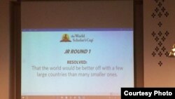 ဒါပေမယ့် ဘယ်နေ့မှာ ဘယ်အကြောင်းအရာကို ဆွေးနွေးမယ်ဆိုတာကိုတော့ စကားရည်လုပွဲ မကျင်းပခင် ၁၅ မိနစ်အလိုမှ ရွေးချယ်ပေးတာဖြစ်တယ်လို့ ဒီစကားရည်လုပွဲမှာ ပါဝင်တဲ့ Yangon Academy International ကျောင်းက ၉ တန်း ကျောင်းသူ မယွန်းသုလင်းက ပြောပါတယ်။