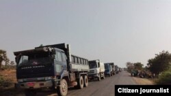 စစ်ကိုင်းတိုင်း၊ ဆားလင်းကြီးမြို့နယ်၊ လက်ပံတောင်းတောင် ကြေးနီစီမံကိန်းမှာ အသုံးပြုမယ့် ကျောက်ခဲသယ်ကားတစ်စီးက နွားတကောင် ကို တိုက်မိပြီး သေဆုံးခဲ့တာကြောင့် ရွာသားတွေက ဒီကိစ္စကို ဖြေရှင်းပေးဖို့ တောင်းဆိုနေပါတယ်။ ဒါပေမယ့် အစိုးရကရော ကုမ္ပဏီဘက် ကပါ တာဝန်ယူ ဖြေရှင်းပေးတာမျိုး မရှိတာကြောင့် ကျောက်သယ်ကား အစီး ၁၀၀ လောက်ကို ဒေသခံတွေက တားဆီးထားတဲ့အကြောင်း ဗွီအိုအေ ထိုင်းအခြေစိုက် သတင်းထောက် မအေးအေးမာက သတင်းပေးပို့ထားပါတယ်။
