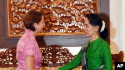 ဒီကနေ့မနက် ဒေါ်အောင်ဆန်းစုကြည်နဲ့တွေ့ဆုံဆွေးနွေးတာနဲ့ပတ်သက်ပြီး မေးမြန်းနိုင်ဖို့ နိုင်ငံတော်အတိုင်ပင်ခံပုဂ္ဂိုလ်ရုံးဝန်ကြီးဌာနက ပြောခွင့်ရသူကို ဆက်သွယ်ခဲ့ပေမဲ့ မအားလပ်တာကြောင့် ဖုန်းပြန်လည်ဖြေဆိုနိုင်တာမရှိခဲ့ပါဘူး။