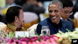 ဗုဒ္ဓဟူးနေ့က ဗီယန်ကျန်းမြို့တော်မှာ ကျင်းပတဲ့ ဂုဏ်ပြုညစာစားပွဲမှာ ပထမပိုင်းက - သမ္မတ အိုဘားမားနဲ့ ဖိလစ်ပိုင်သမ္မတ ဒူတာတေး ကို ဘေးချင်းယှဉ် နေရာချထားမယ်လို့ ဖိလစ်ပိုင်နိုင်ငံခြားရေးဌာနက ကနဦး သတင်းထုတ်ပြန်ခဲ့ပေမဲ့လို့လည်း - အဲဒီနေ့ည စားပွဲဝိုင်းမှာတော့ - သမ္မတ အိုဘားမားဘေးမှာ ဘရုနိုင်းဘုရင်ဘေးမှာ ထိုင်ခဲ့တာ ဖြစ်ပါတယ်။