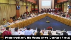 ဖြေ - “အမှန်က ၁၈၊ ၁၉ က framework review meeting မှာ ဘာကို အဓိကထားမလဲဆိုတော့ တနိုင်ငံလုံးမှာလုပ်မယ့် အမျိုးသားအဆင့် နိုင်ငံရေးဆွေးနွေးပွဲတွေအတွက် လုပ်ငန်းလမ်းညွှန် ပြတ်အောင်ဆွေးနွေးမယ်ပေါ့နော်။ ဆွေးနွေးပြီးရင် ကျနော်တို့ ၂၁ ရက်နေ့ UPDGC မှာ အဲဒါကို အတည်ပြုပြီးတာနဲ့ နိုဝင်ဘာလထဲမှာ တနိုင်ငံလုံး နိုင်ငံရေးဆွေးနွေးပွဲတွေ လုပ်ဖို့ဆိုပြီးတော့ ရည်မှန်းပြီး လုပ်တာပေါ့။ ဆွေးနွေးပွဲမှာ ပါလာတာက လက်မှတ်မထိုးရသေးတဲ့ UNFC ရဲ့ ဆွေးနွေးဖို့ ဖွဲ့စည်းထားတဲ့ DPN ကနေ တောင်းဆိုထားတာက framework သူတို့က ဆွေးနွေးချင်တယ်ပေါ့နော်။ အရင်တုန်းက ဆွေးနွေးခဲ့တဲ့ဟာတွေမှာ သူတို့က digest ဖြစ်ချင်တယ်ပေါ့။ ဖြစ်ချင်တယ်ဆိုတဲ့အတွက် သူတို့က တောင်းဆိုတယ်။ တောင်းဆိုတဲ့အတွက် ကျနော်တို့ရဲ့ ဆွေးနွေးပွဲကို မနက်ဖြန်၊ သန်ဘက်ခါ နှစ်ရက်ရွှေ့ပြီးတော့ တိုင်းရင်းသားတွေ တောင်းဆိုတဲ့ framework review ပေါ့နော် အဲဒါကို ကျနော်တို့ ဒီနေ့ လုပ်လိုက်တယ်။”